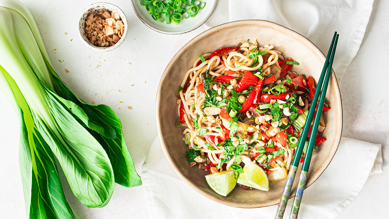 Une recette rapide, gourmande et abordable, parfaite pour un dîner express et rassasiant. Des nouilles chinoises sautées aux légumes 100% végétariennes à base de poivrons et de pak choï. Une explosion de saveurs avec des produits simples et frais ! Et pour les amateurs de nouilles et de légumes croquants qui consomment de la viande, pourquoi ne pas jeter un œil à la recette du Bo Bun vietnamien ?